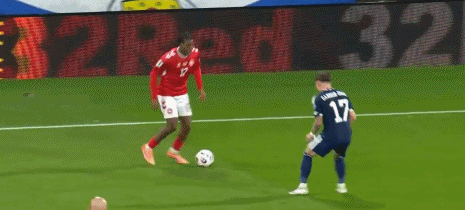 第4分钟,本-多克传中,麦克托米奈惊天倒钩破门,苏格兰1-0