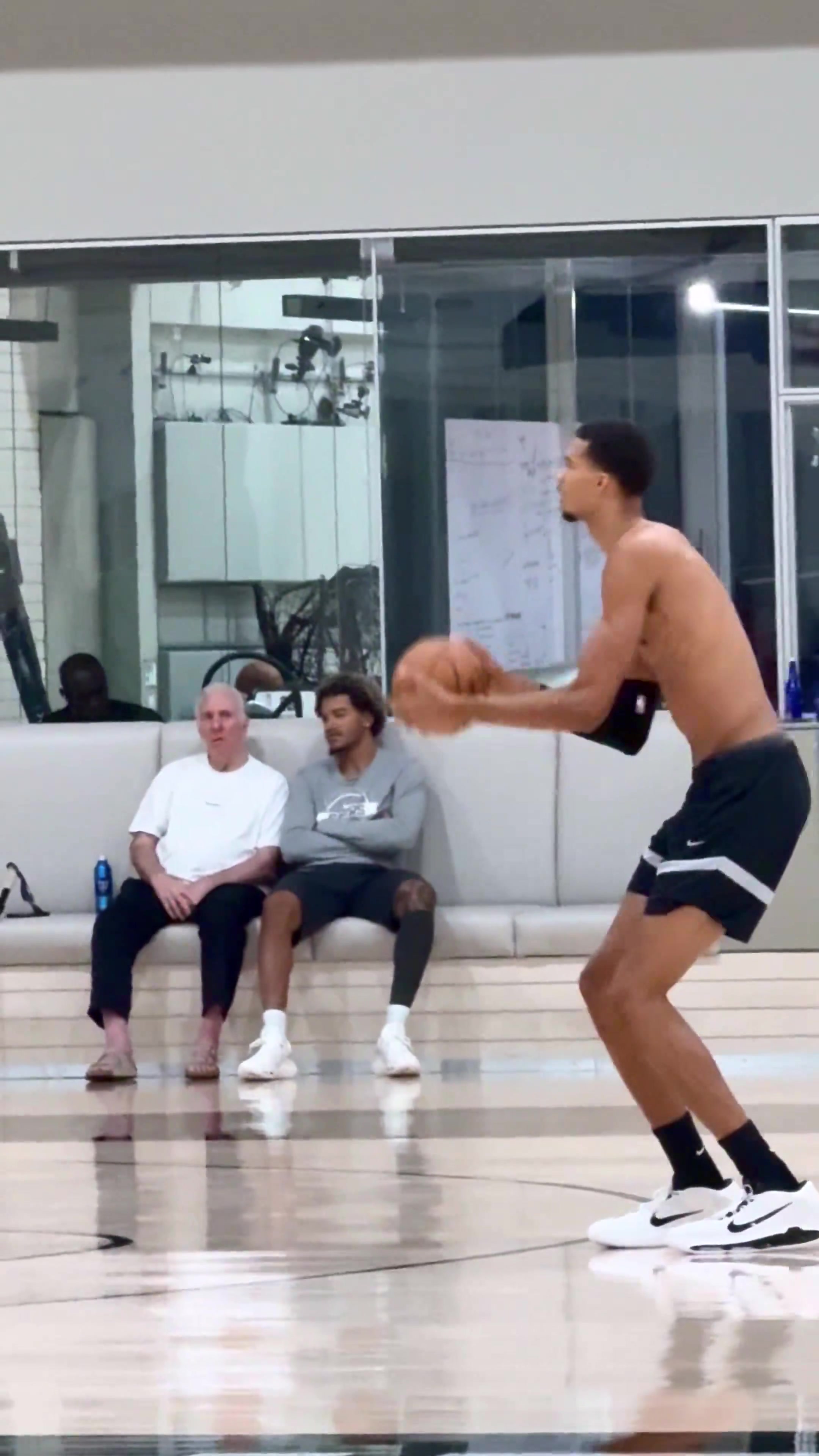 马刺队魂波波维奇现身观看文班亚马训练三分️️️
