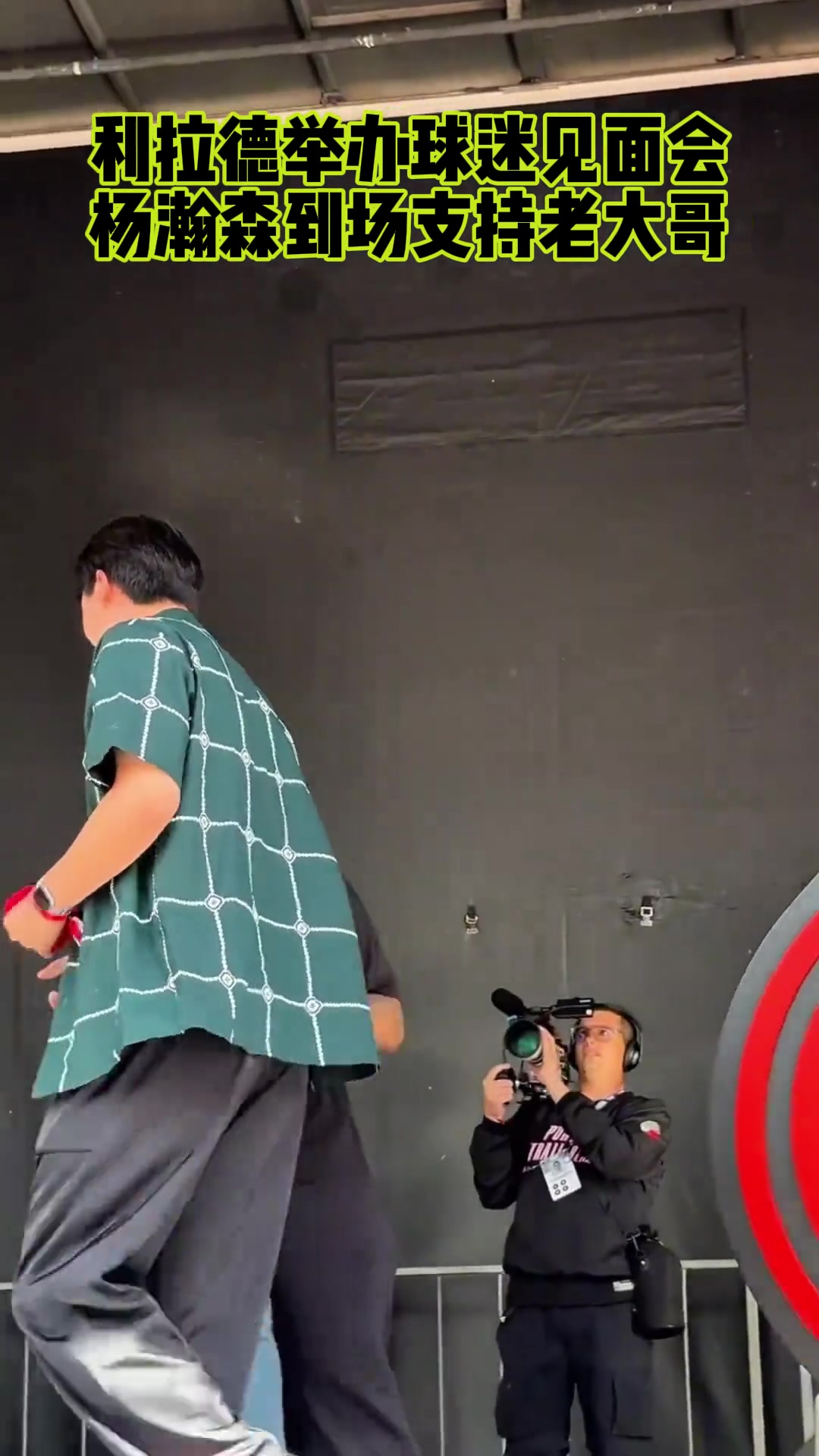 杨瀚森出席利拉德球迷见面会与利拉德拥抱